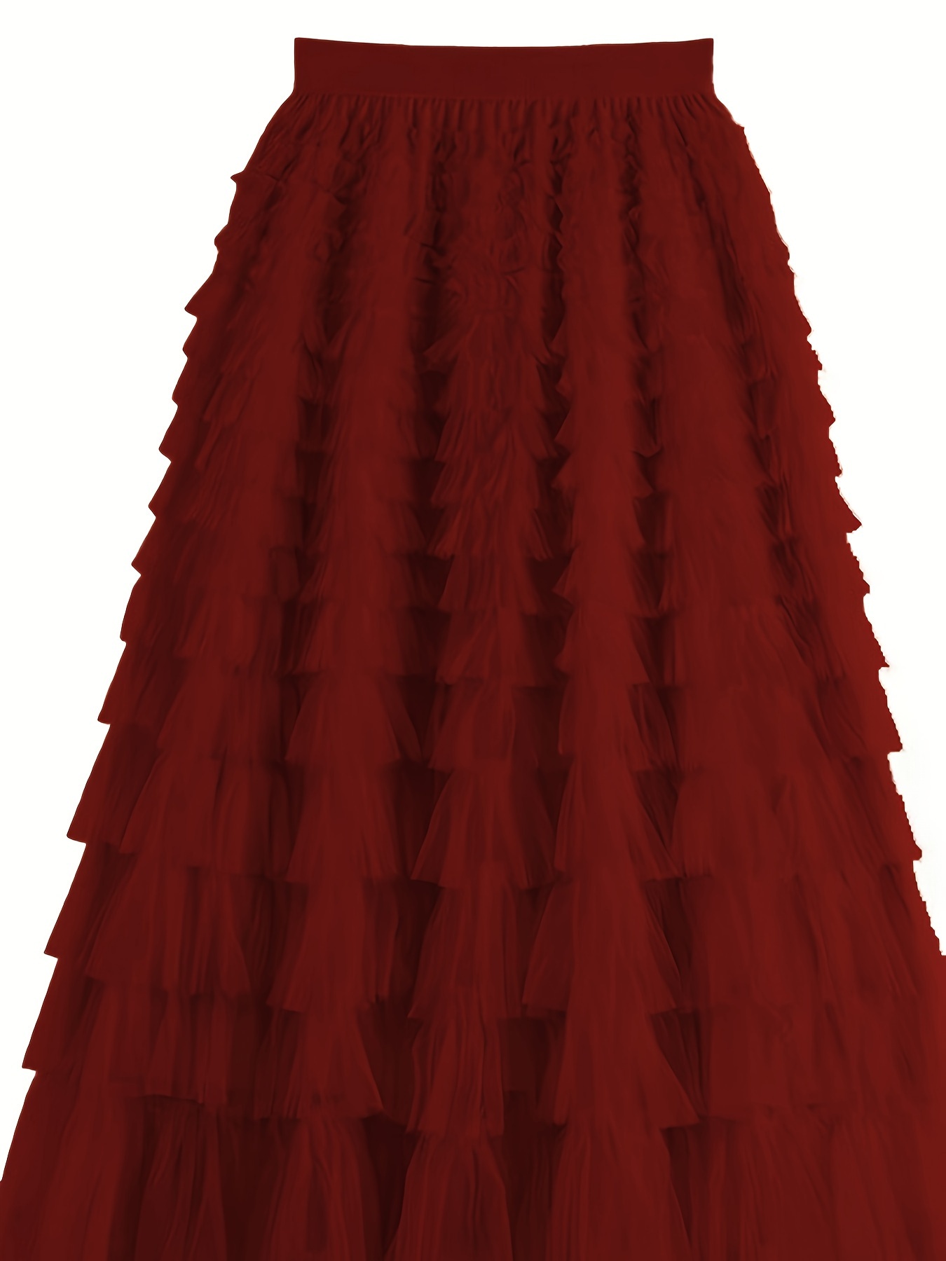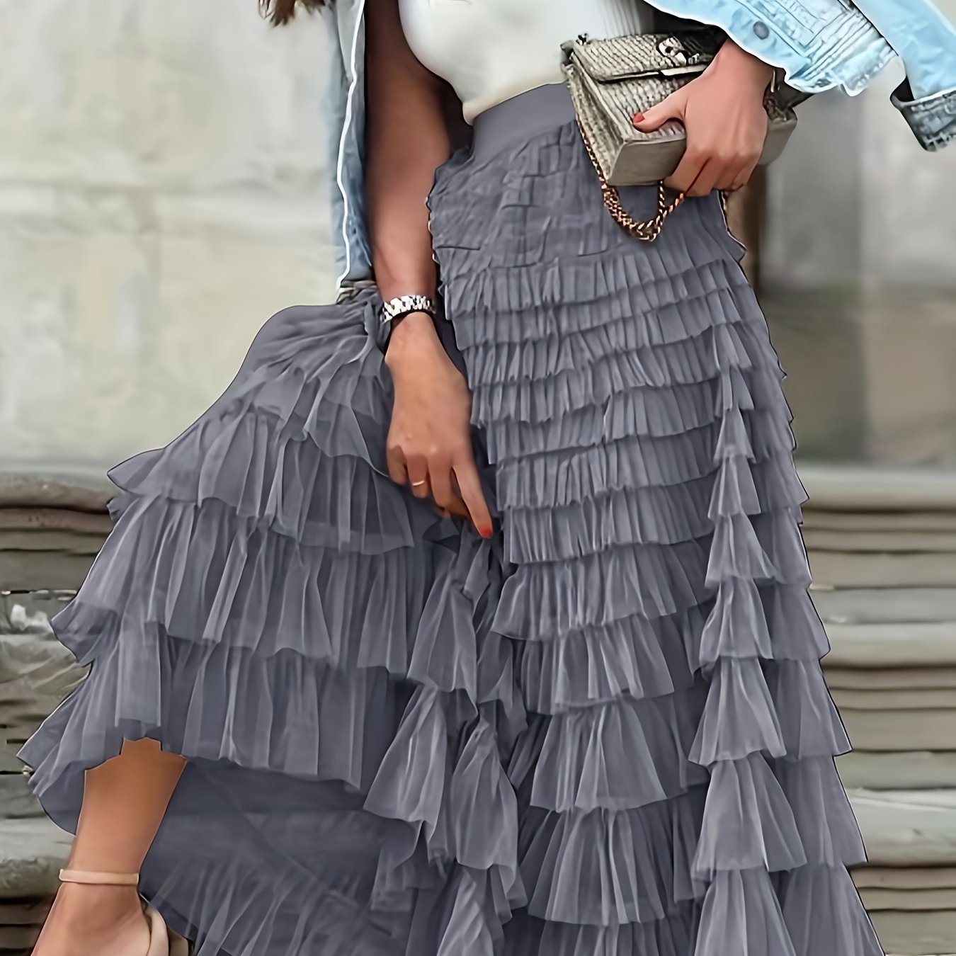 Mesh Layered Hem Skirt, Boho High Waist Skirt, Women's Clothing